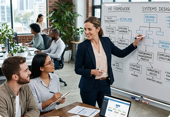 Strategic HR support for organizations building long-term HR systems.